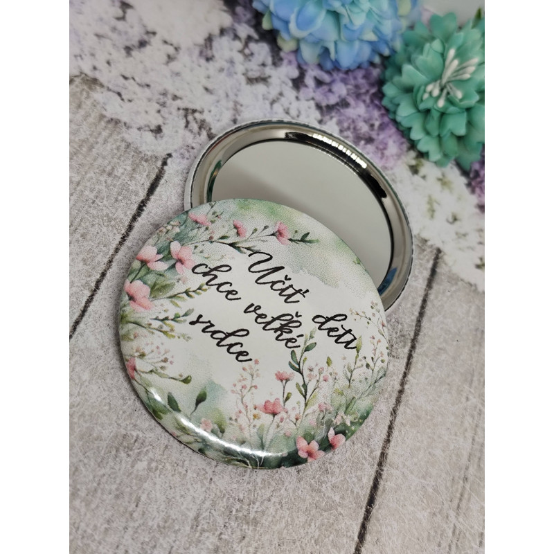 Zrkadielko pre pani učiteľku je drobný, no veľmi silný darček, ktorý vyjadruje vďaku a uznanie. Jemný kvetinový motív a trefný citát robia zo zrkadielka ideálny darček ku Dňu učiteľov, na koniec školského roka, Vianoce alebo len tak – z láskavosti.